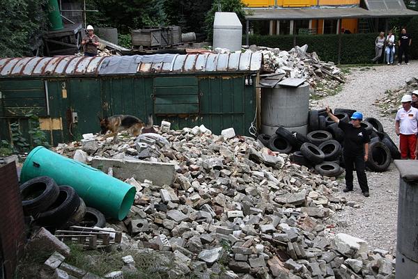 Am 26./27.8. fand die jährliche RH-Prüfung in der OG Reinickendorf statt. Im Vorfeld hatte ich etwas bedenken, bei dem Richter anzutreten, da Detlef Kühn ein ausgewiesener Fachmann dieses Bereiches ist, ABER ich mußte feststellen, dass gerade diese Kompetenz besonders angenehmen ist und zu nachvollziehbaren Bewertungen führt. Ich hatte nicht erwartet, dass wir (Hilde und ich) uns überhaupt behaupten könnten, so hat die „wilde Hilde“ aber am Montag die Fläche B sogar mit Gut bestanden, und das obwohl wir genau zwei mal Flächensuche üben konnten, In den Trümmern lief es dann weniger erfolgreich, wenn auch alle 3 Personen von Hilde gefunden wurden, allerdings hatte Sie ihren Text vergessen, wie Sonja sagen würde und hatte daher kein Anzeigen zu verzeichnen. Insgesamt hat es nur knapp nicht zum Bestehen gereicht. Sie ist aber trotzdem meine Beste und beide Unterordnungen waren so ziemlich die Besten die Sie bei einer Prüfung zeigte. Ich bin soooo Stolz auf mein altes Mädchen, sie ist schon ne Feine!